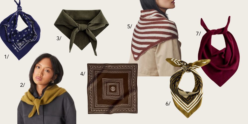 Scarves are one of the biggest accessories trends I’m seeing for 2025. You can go for a very chic and classic silk scarf or a bandana style scarf if you prefer a hint of western, but the most trendy scarves right now are triangle wool scarves that can be worn over the shoulders and tied in the front. I even included one on my fall wishlist which I plan on purchasing soon (it’s #7 on the graphic above!)