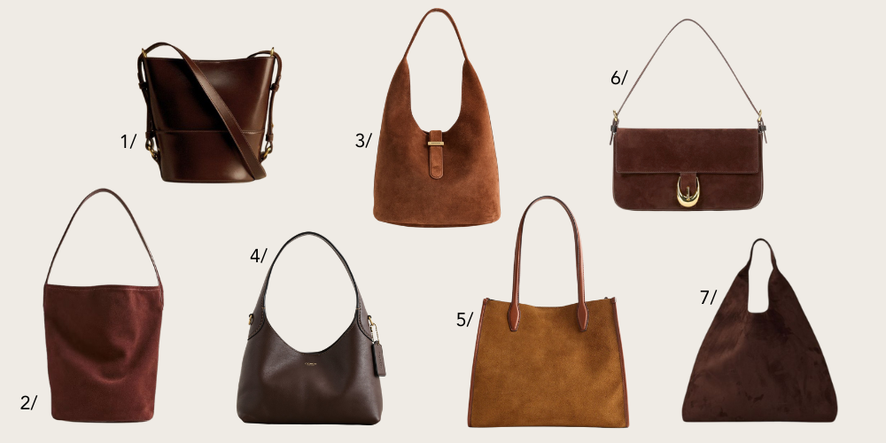 Leather and suede bags are nothing new, but I’m seeing so many in beautiful shades of brown. Suede bags are especially trendy (suede in general, really.) I’ve linked several options at different price points. The most budget-friendly is the vegan suede slouchy bag from Gap which I own and wear constantly (#7). I’m also linking a few mid-range bags if you’re looking to invest.
