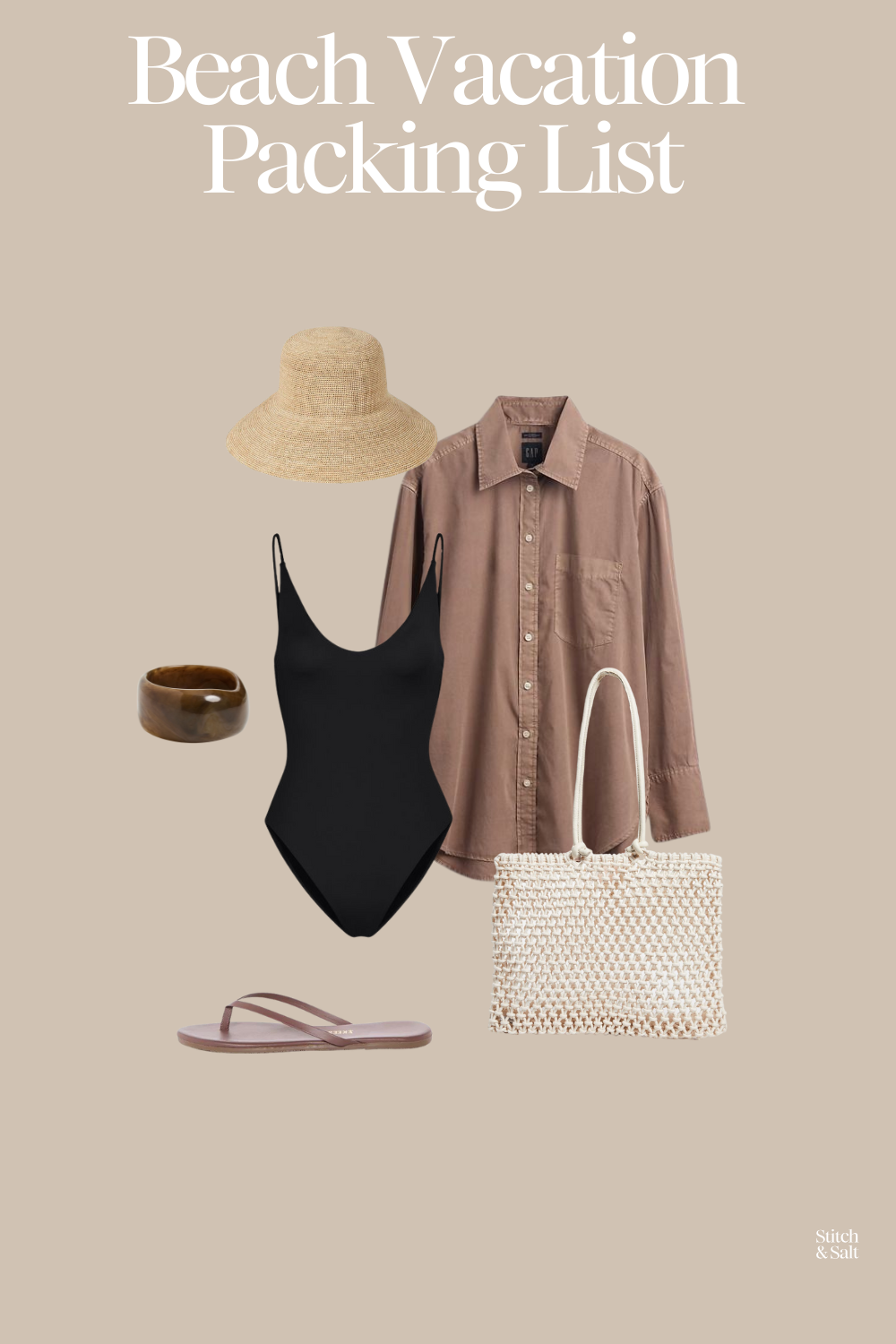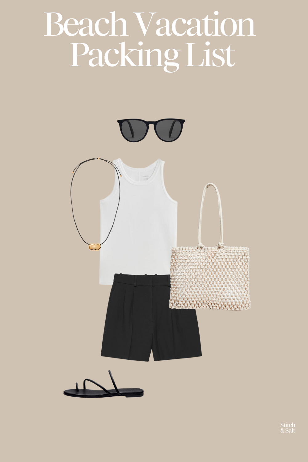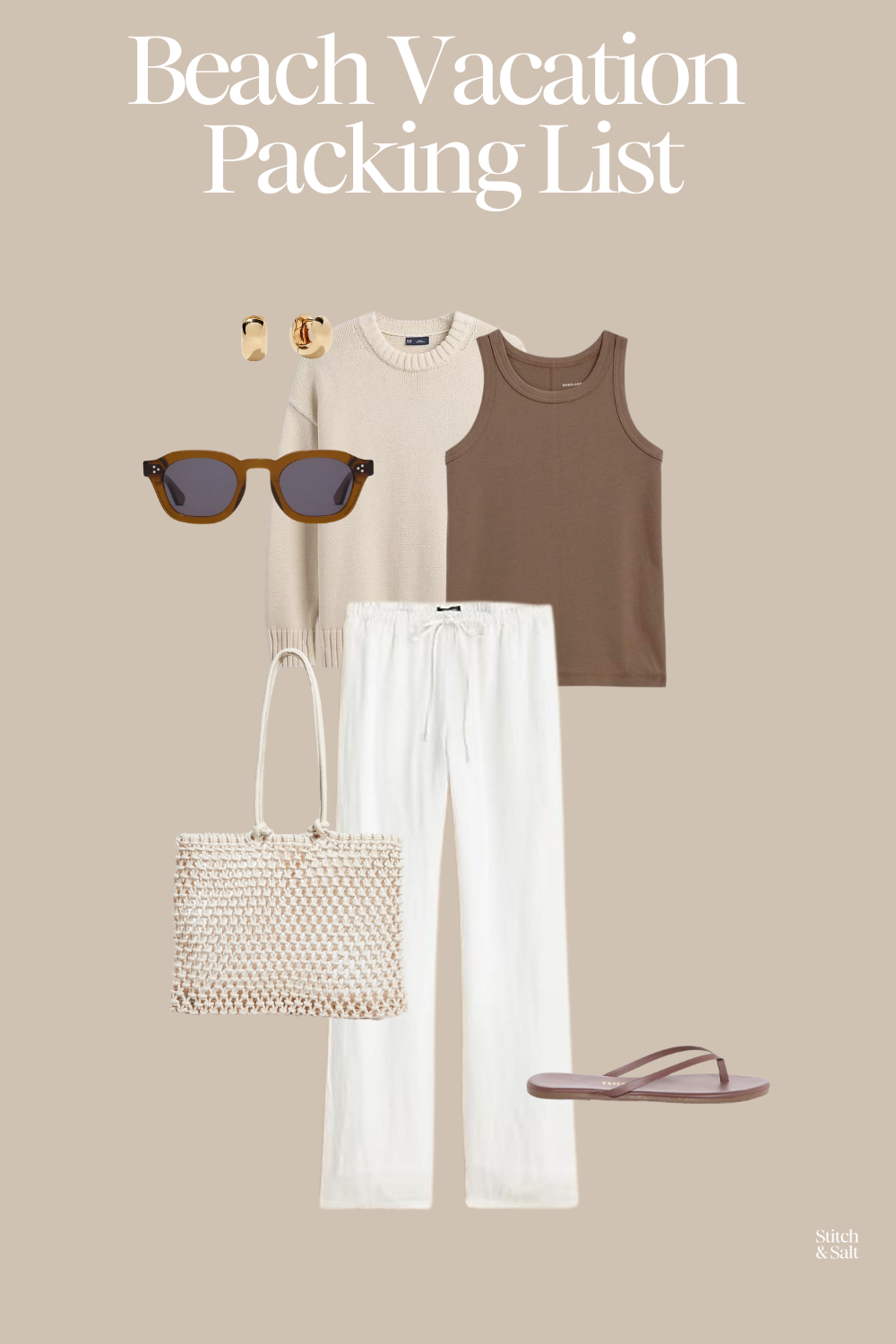It’s that time of year when many of you are headed to warm weather destinations to get a much needed break from winter. I admit, I’m so jealous, but I’m channeling that jealousy for good by creating this beach vacation packing list for you. Think of this as more of a checklist and fill in with similar items you have. As you can see, I love neutrals; they make mixing and matching on vacation so easy. This packing list includes clothing, shoes, and accessories. I’m breaking down the why of each piece below, and be sure to scroll to the bottom for twelve beach vacation outfit ideas.