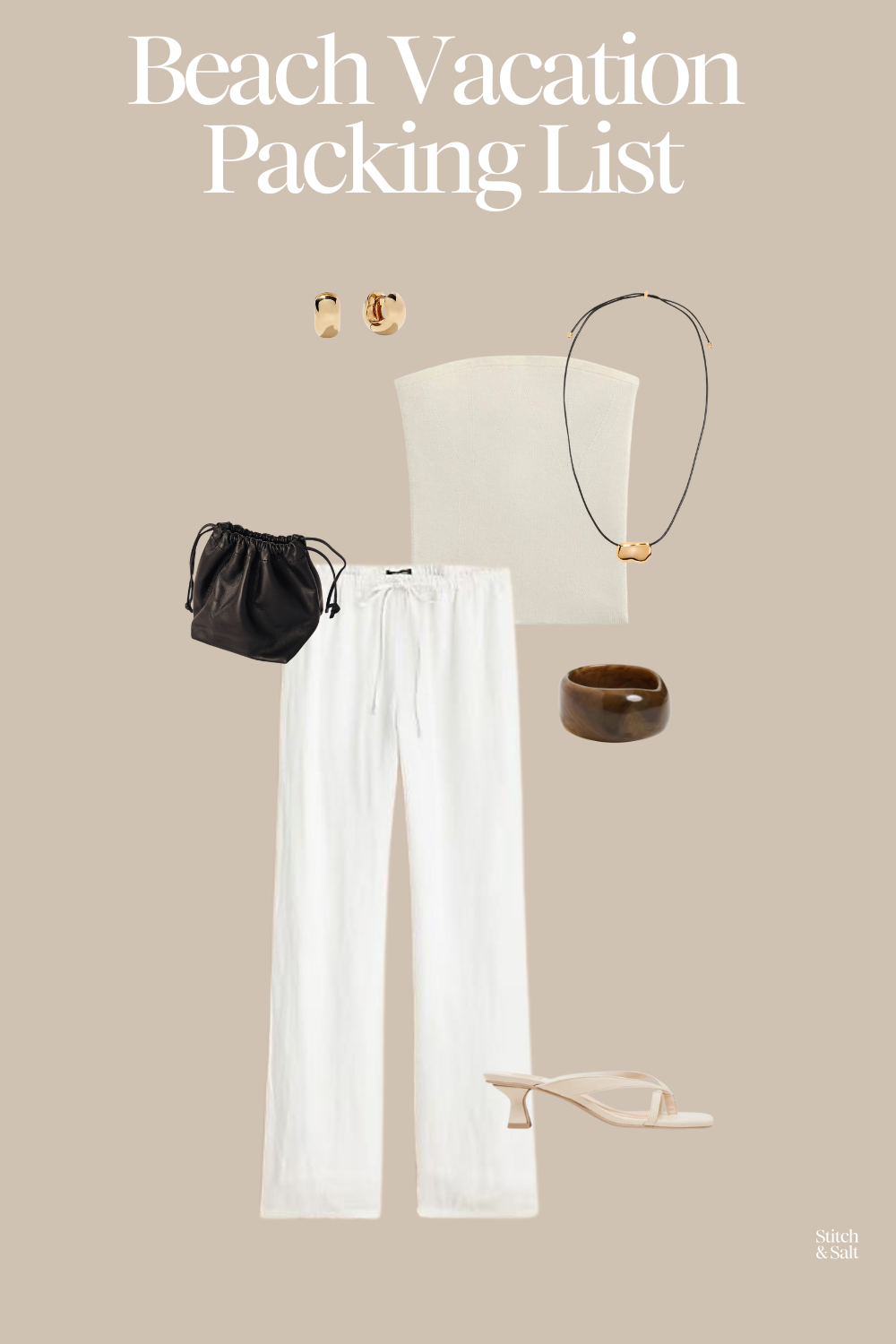 White Linen Pants // Linen pants are a bit more dressy than shorts. They pair nicely with tube tops in particular. Or you could even style your pants with your swimsuit for a beach outfit. The pair pictured here is from J.Crew, but I have this pair from Nation LA that are so chic.