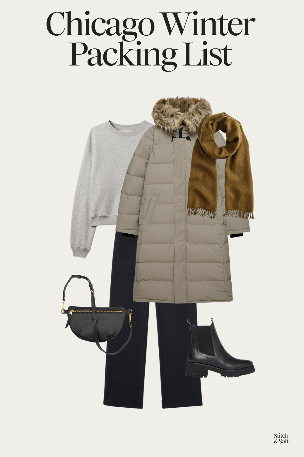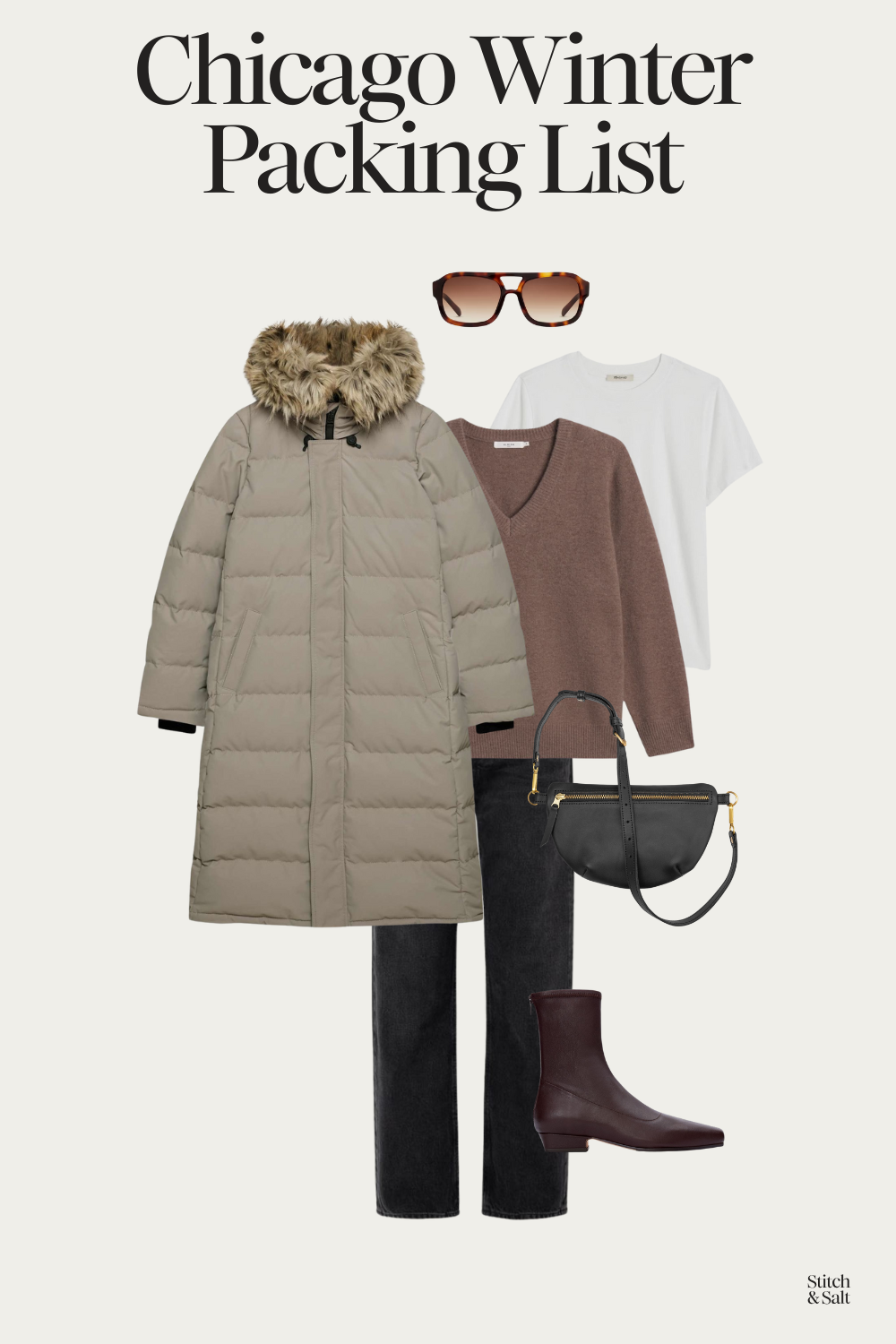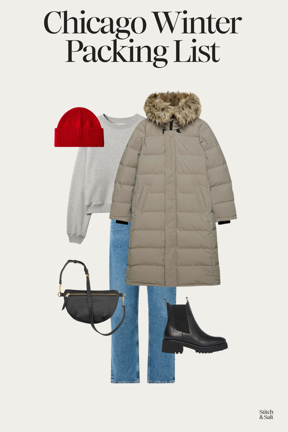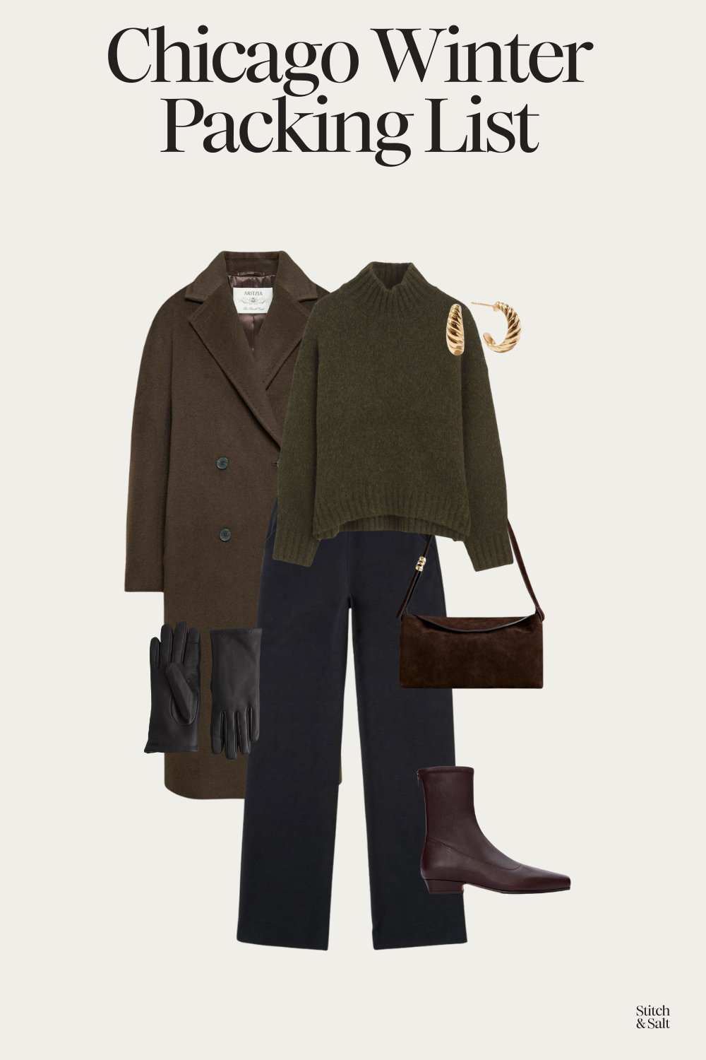 For those of you visiting Chicago in the wintertime – there is still tons to do here when it’s cold – I’m sharing a Chicago winter packing list along with some outfit ideas. If you’re visiting, you’ll probably be doing a little sightseeing and spending time outside walking downtown or waiting for the L Train. You’ll want to pack plenty of layers, warm sweaters, and heavy duty coats. But, don’t worry, I also created this packing list to be chic and stylish as well.
