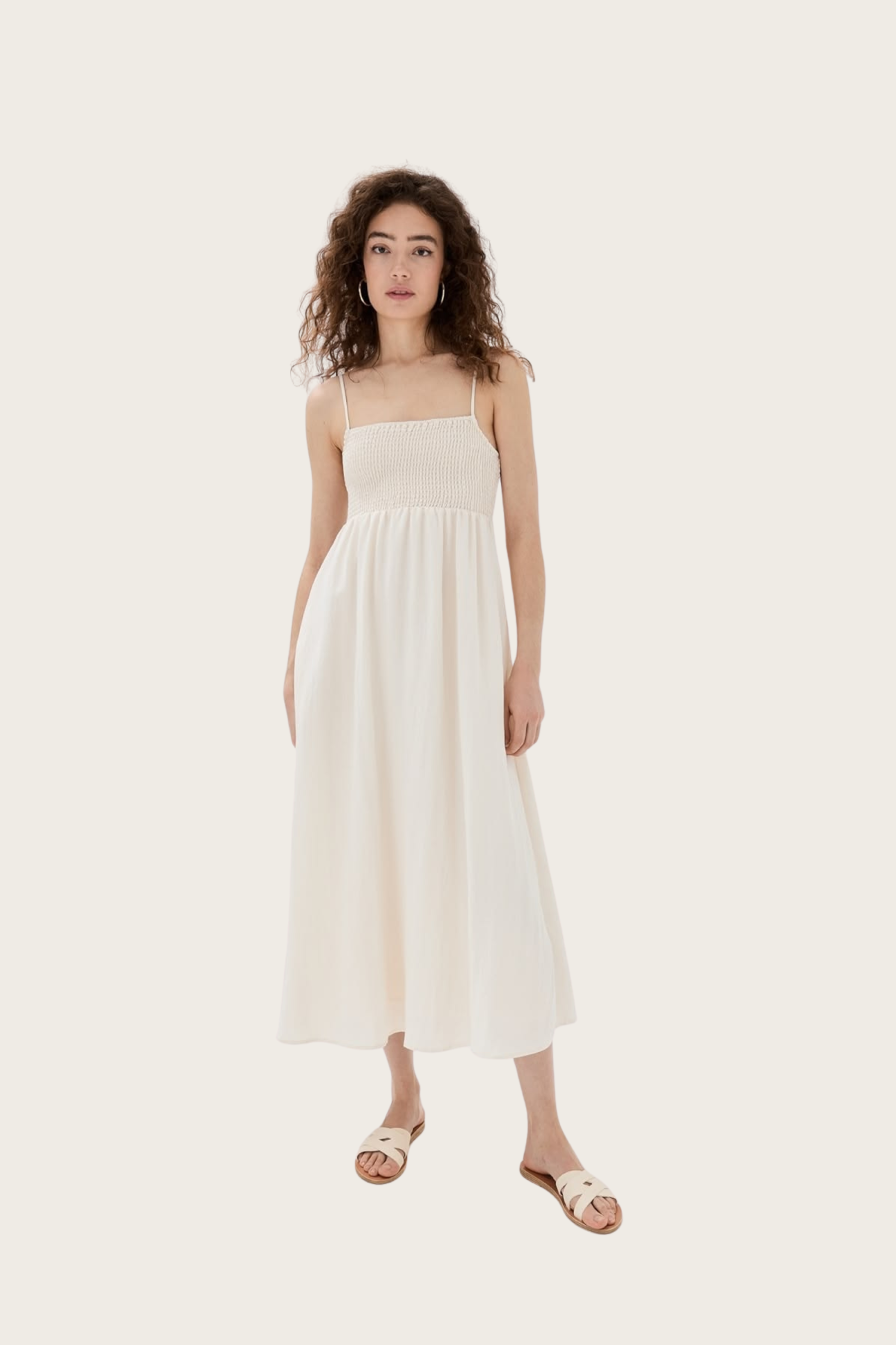 If you’re on a budget, check out this dress from Z Supply which comes in under $100. It has a smocked bodice and little thin straps which I love.