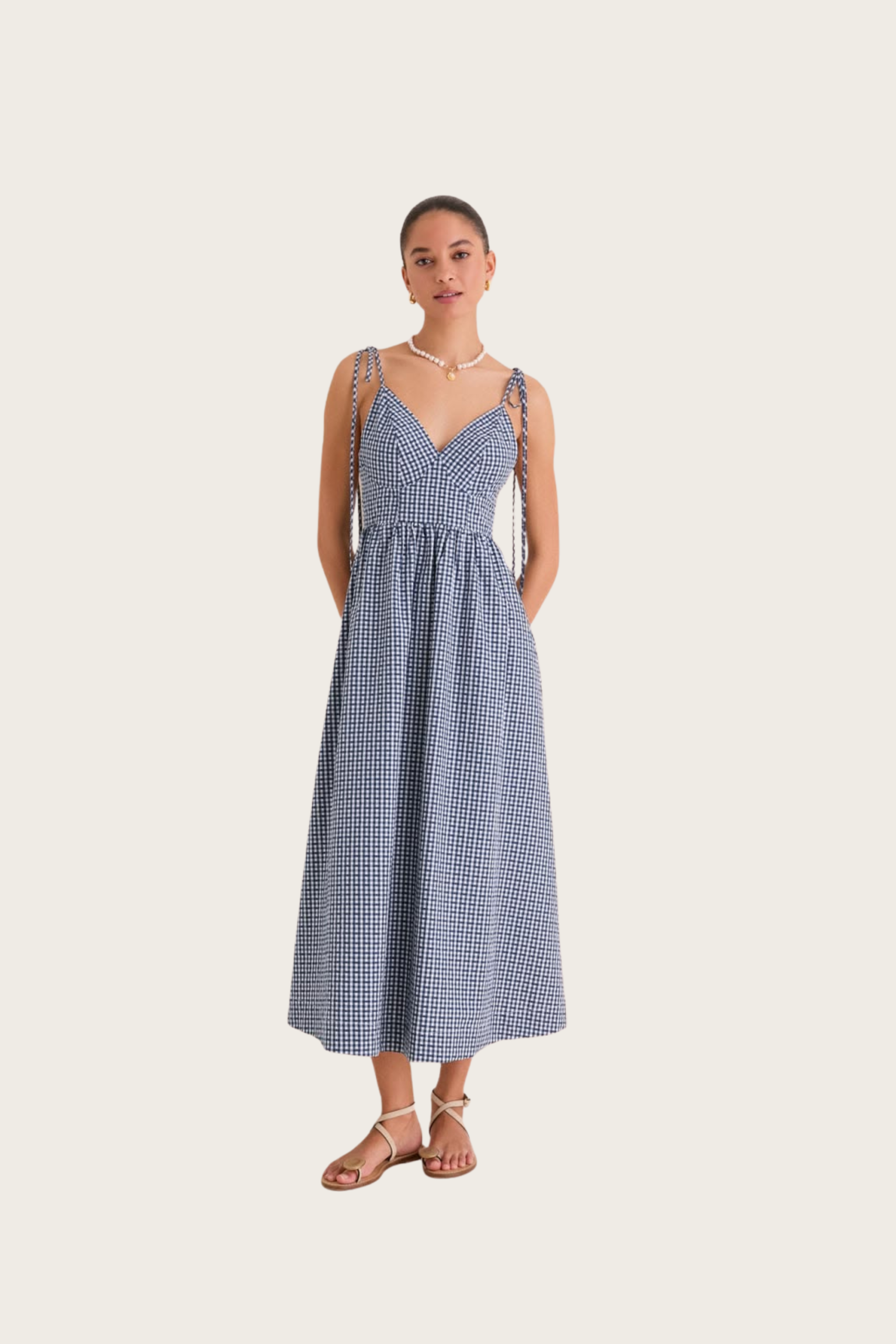 English Factory Navy Gingham Sloane Maxi Dress