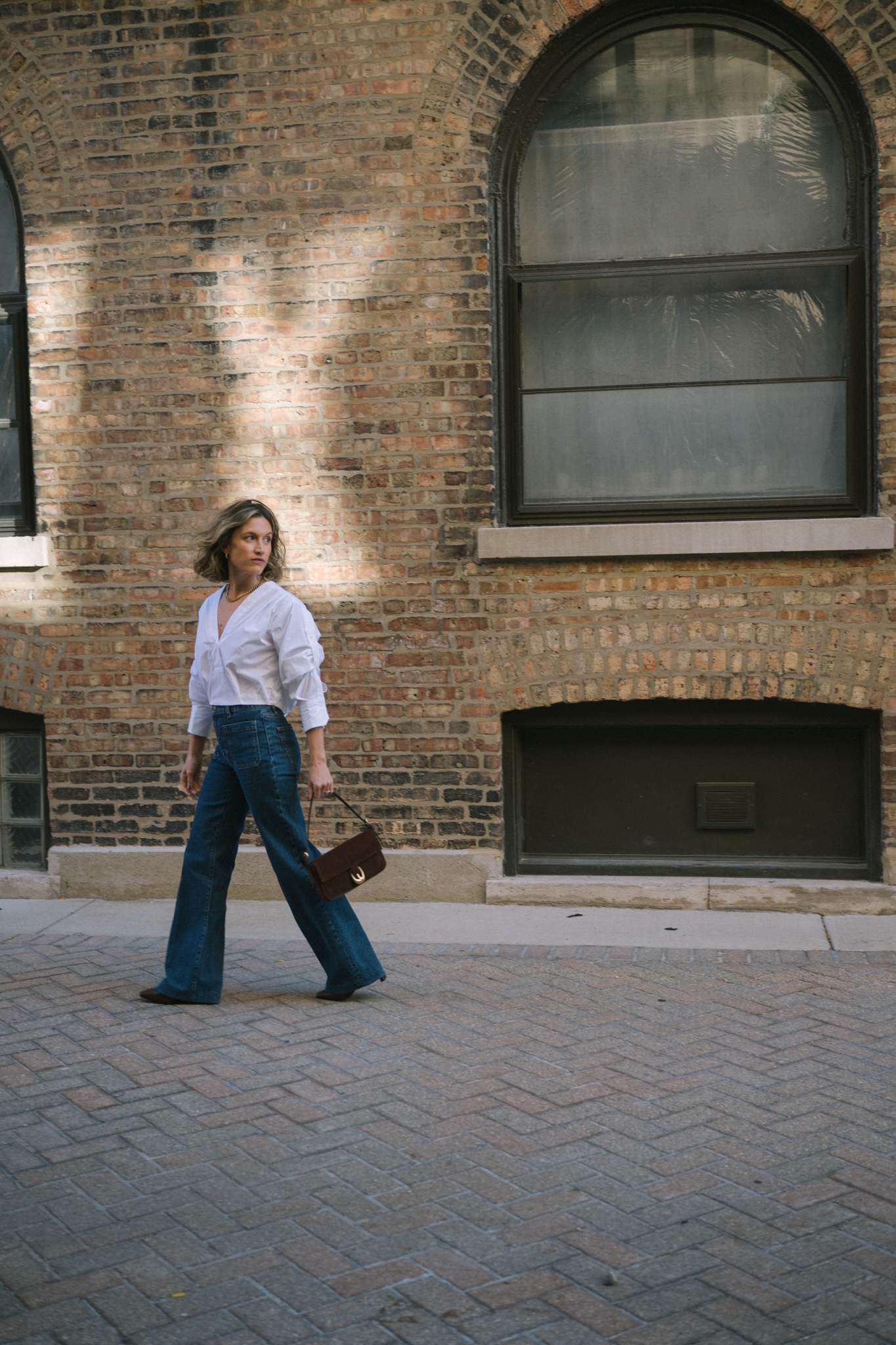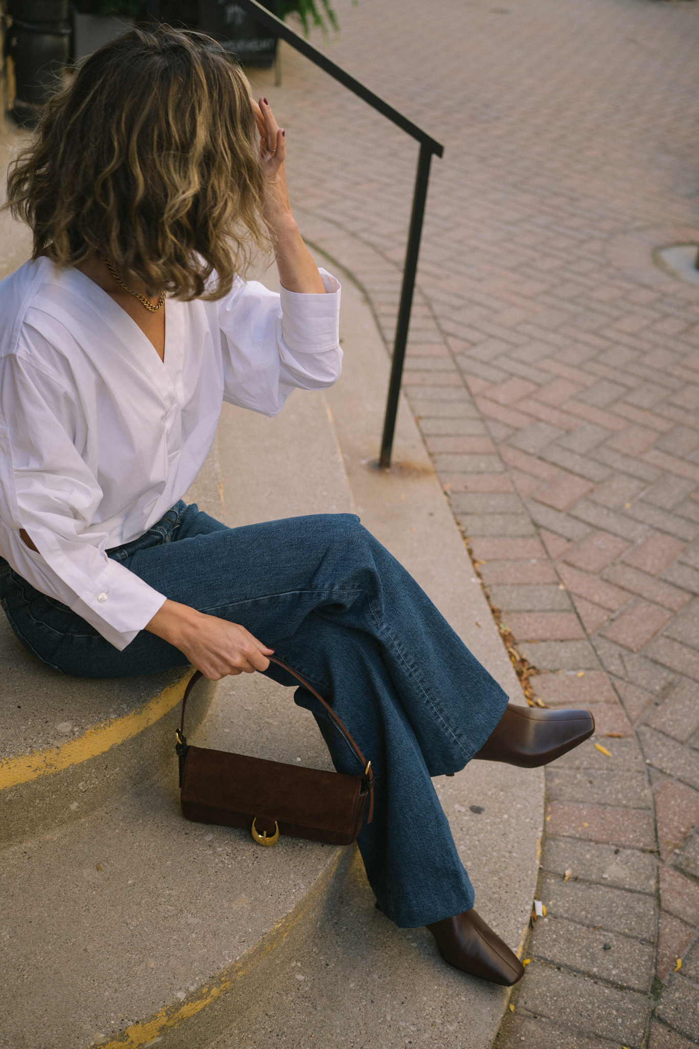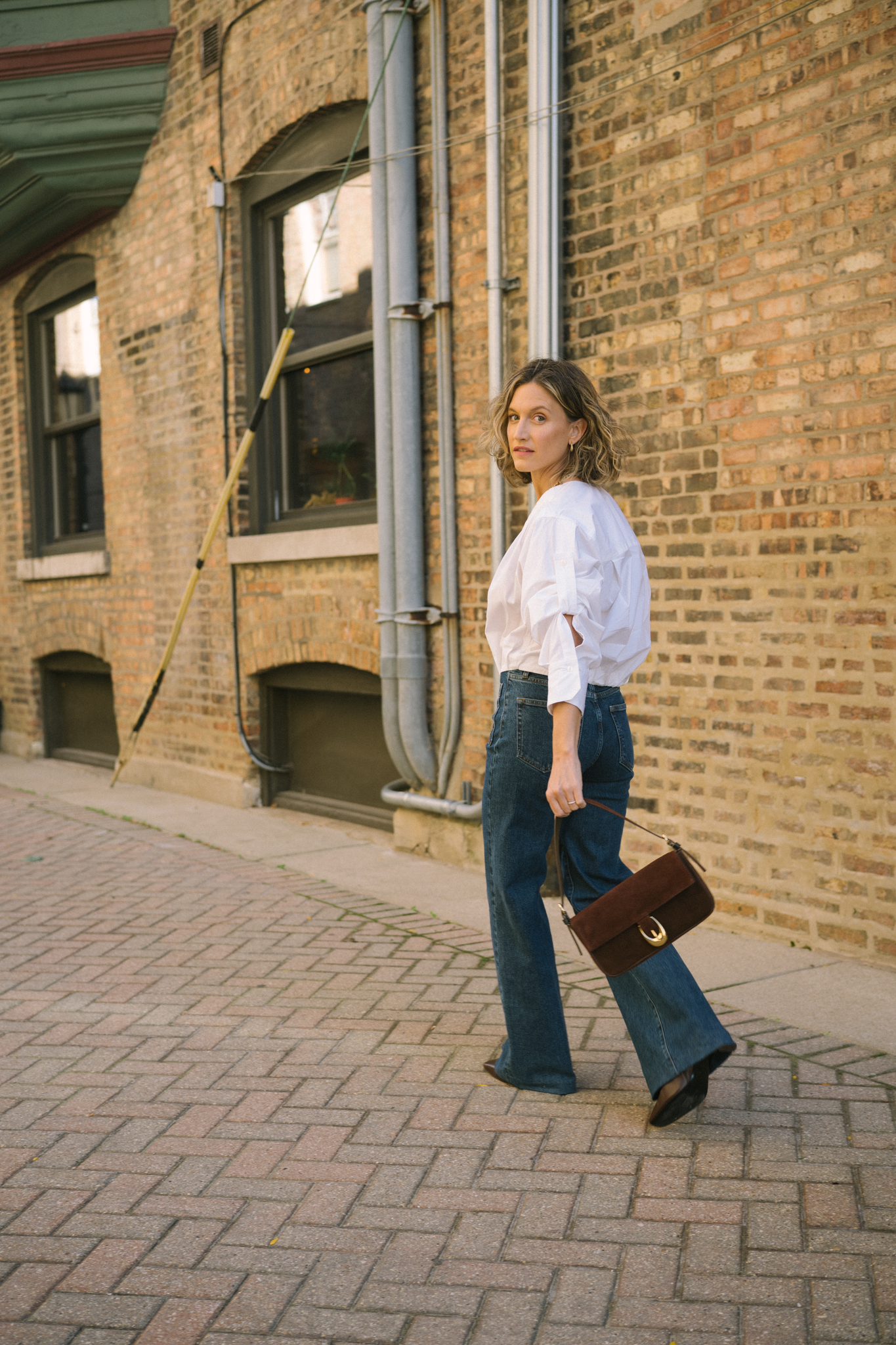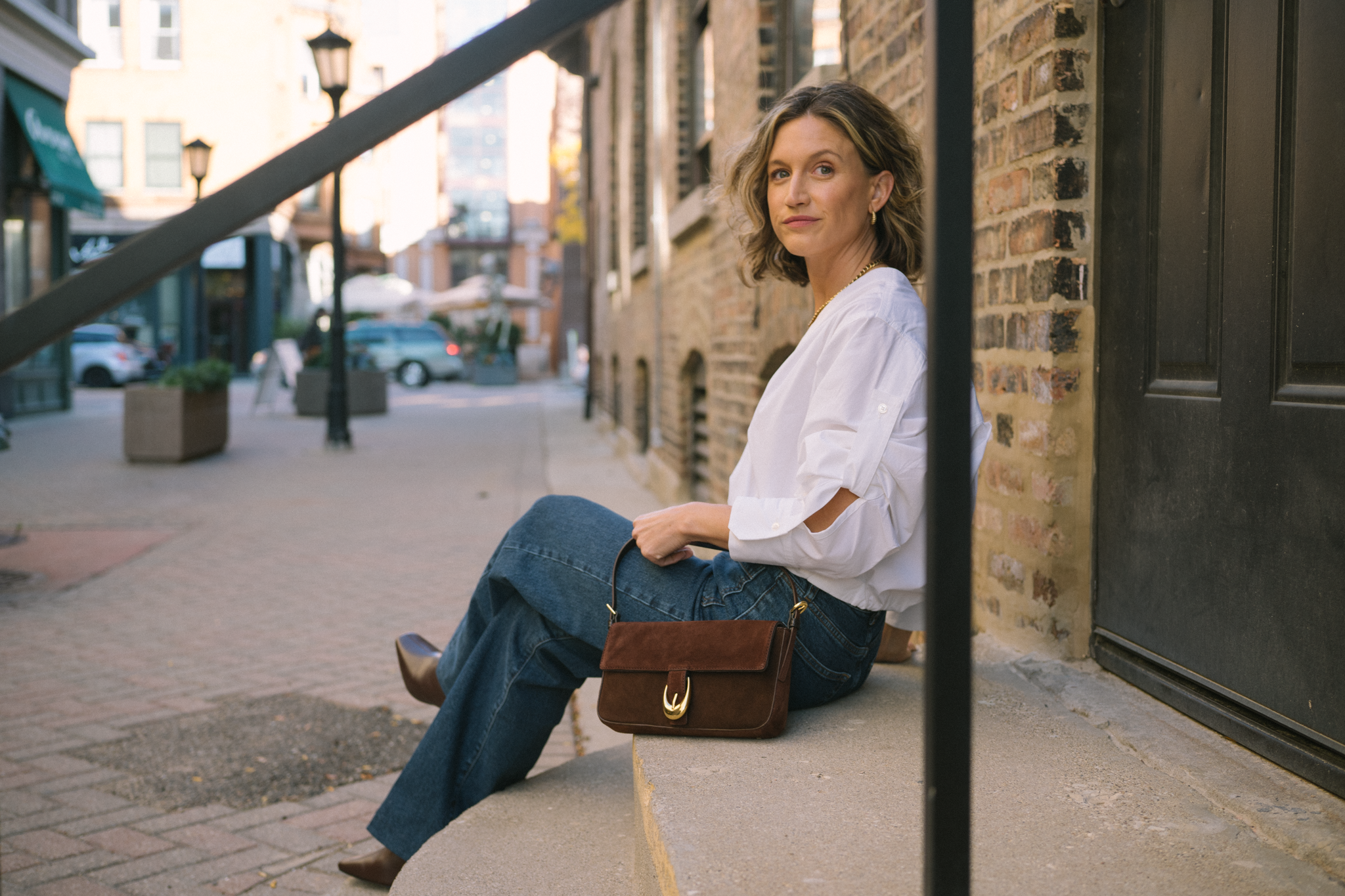 One of the style tips you’ll hear me repeat often is to invest in bags and shoes. Bags are an accessory that actually make a big impact on your look. Plus, bag trends are typically slow to cycle, and they really don’t go out out of style ever. This one I’m wearing in these photos is from Staud and has been on my wishlist for a long time. She’s a beautiful chocolate brown suede with a chunky buckle and shoulder strap. Don’t be surprised if you see me wearing this daily, although she’s perfect for date night. I’m linking some more little bag options below (but this one’s my favorite!)