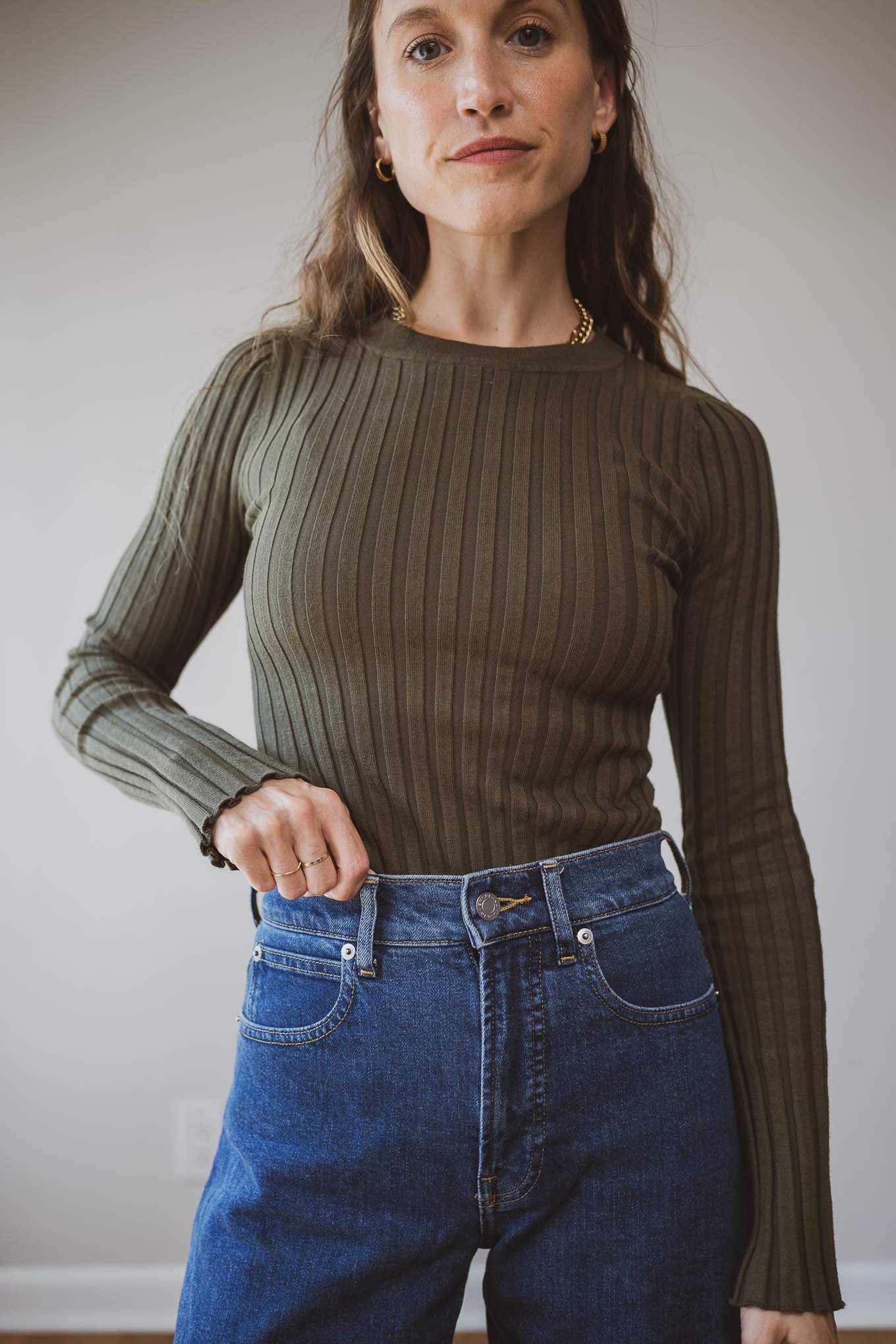 Cotton Cashmere Ribbed Long Sleeve Sweater