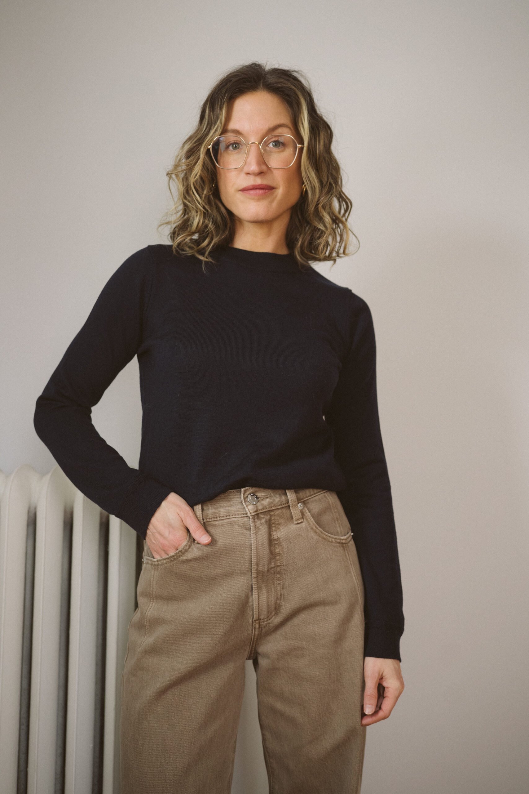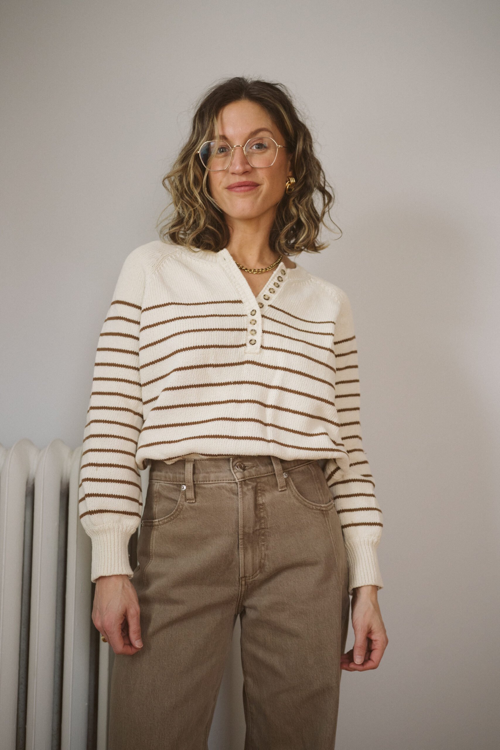 I often recommend the Léontine Jumper for people who just cannot wear wool since it’s one of the few cotton sweaters Sézane has available. It has henley style buttons down the neckline which makes it read more casual. One thing I love about this sweater is the lovely drape it has both on the body and on the sleeves. I recommend staying true to size for a relaxed fit.