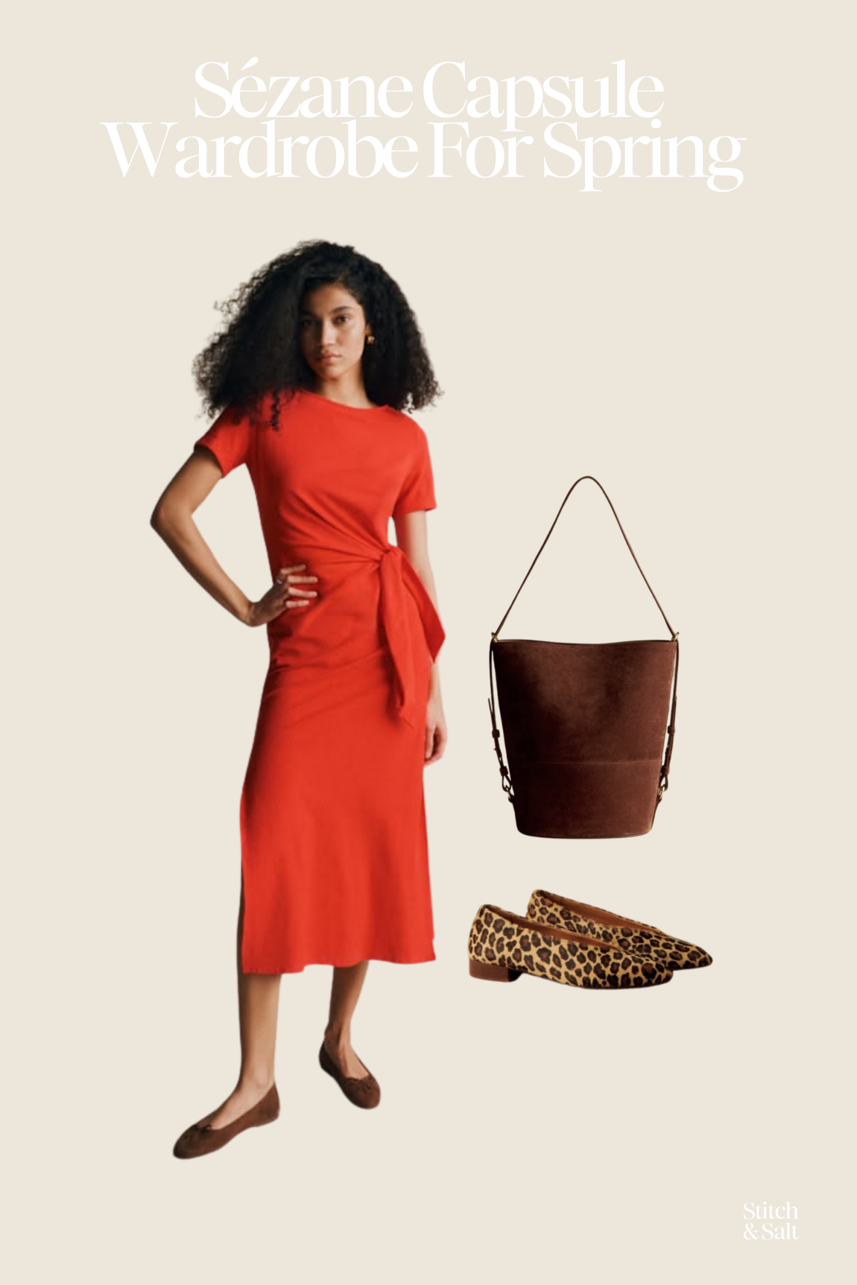 Most of the pieces I included in this Sézane capsule wardrobe are pieces I own, but I did fill it in with other items to round out the capsule wardrobe for spring. In terms of sizing, I find the sizing recomendations listed on the product pages to be pretty accurate. I find tops and dresses to be true to size while their bottoms to run small. Definitely size up in their denim and trousers. Outerwear varies – I’ve listed my recommendation below.