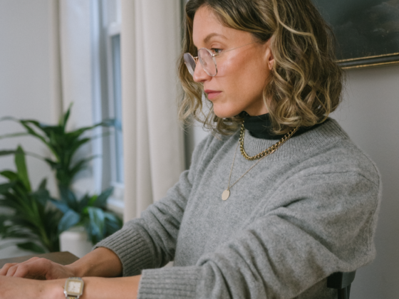 A combination of a blouse and trousers is always elegant and sophisticated. This mesh blouse from Mango is sheer in the back but covers everything you need it to in the front. For the rest of the look, I’m wearing my Aritzia trousers in black which are a similar comfort level as pajama pants in my opinion, with brown heeled ankle boots.