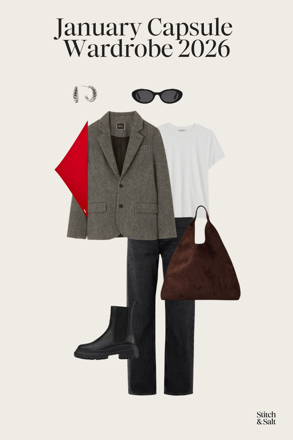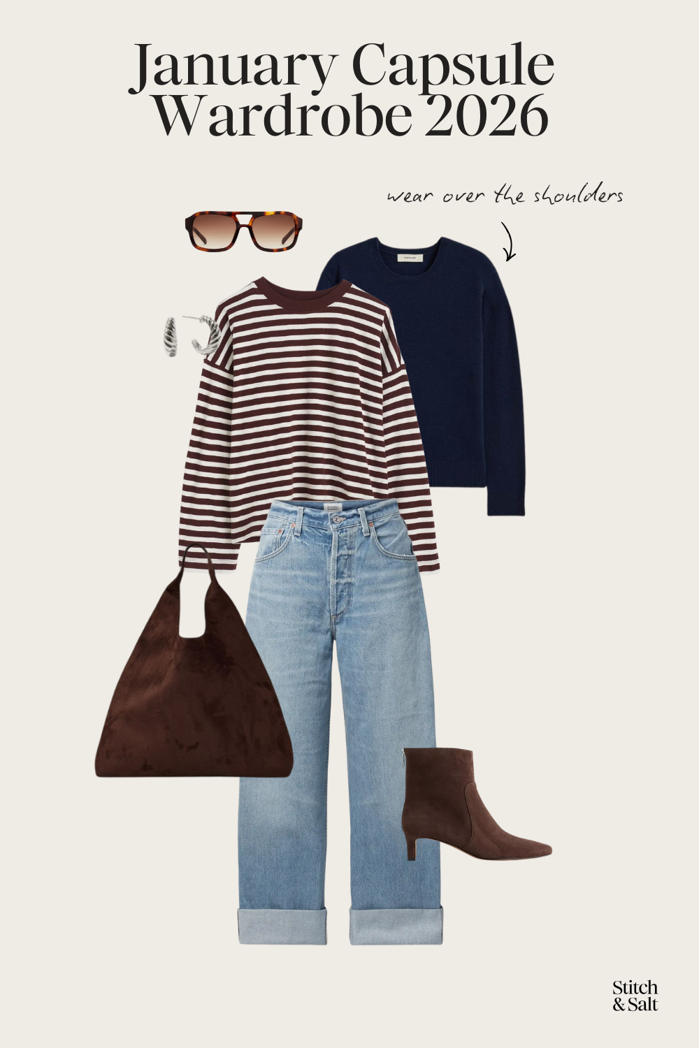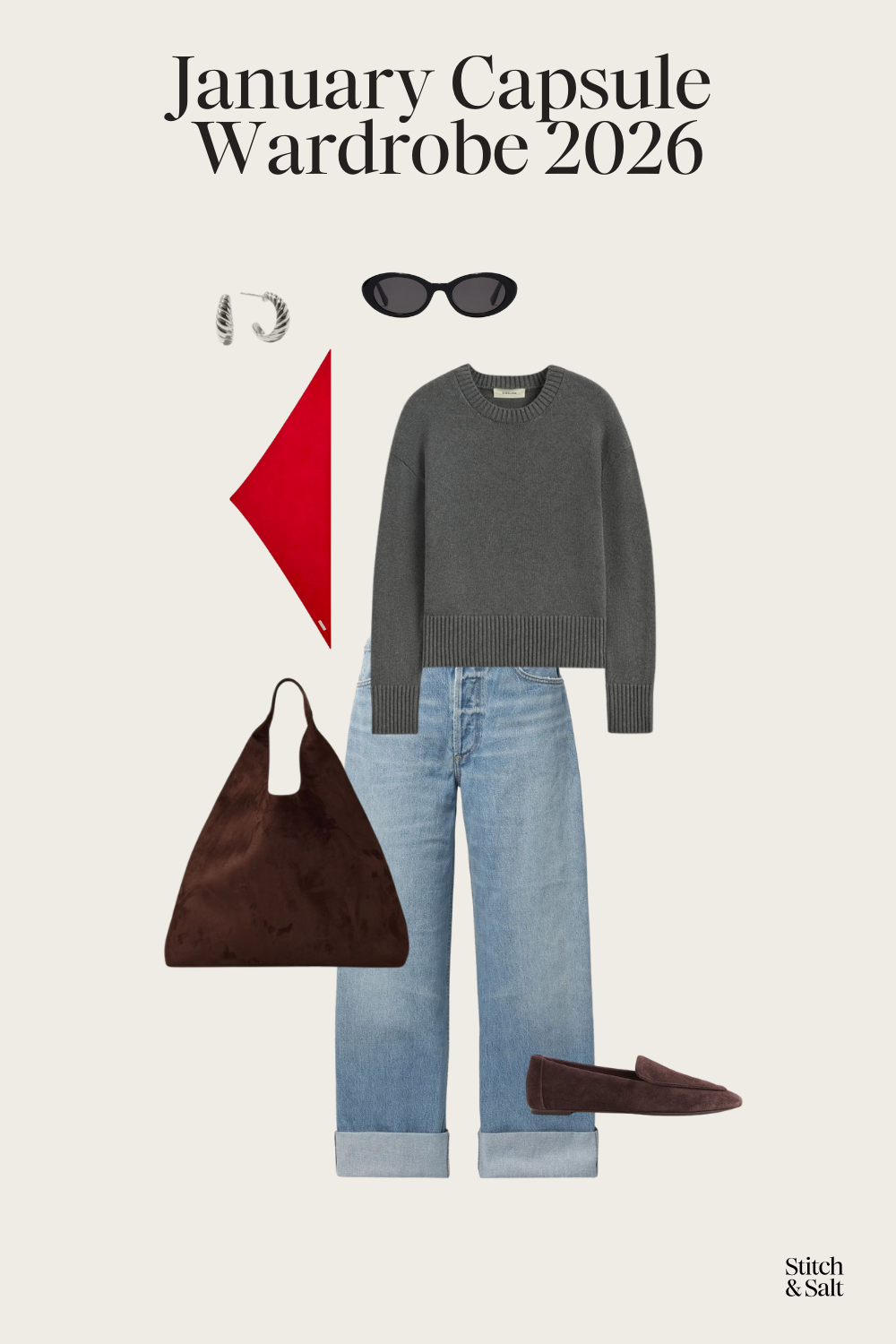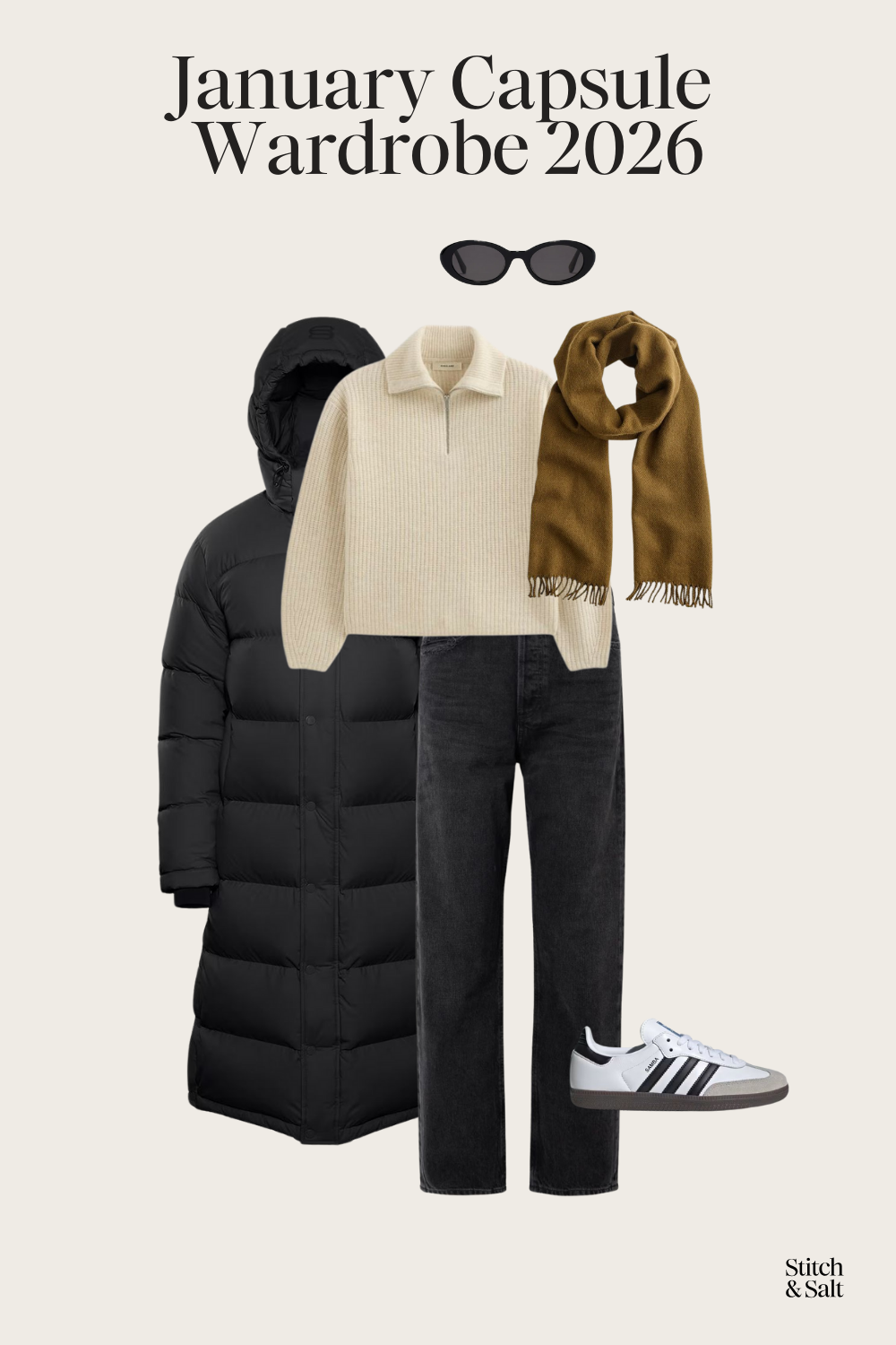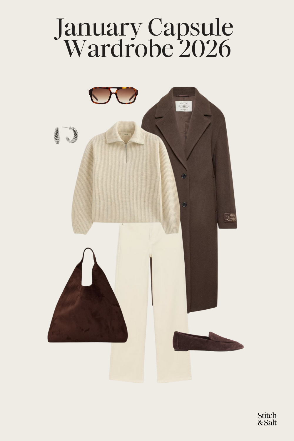 The first capsule wardrobe of 2026! You’ll see this winter capsule wardrobe is for the month of January. This year, I’m planning to do monthly capsule wardrobes here on the blog. There will be plenty of overlap with my seasonal favorites appearing across multiple capsules, but I really like the option to switch up a few pieces after about thirty days. For my January capsule wardrobe, I pulled twenty-five cold weather pieces from my wardrobe including ten tops, six bottoms, three pieces of outerwear, and six pairs of shoes. I’m also sharing the accessories I plan to add down below as well. As always, I included plenty of outfit ideas in this post using the pieces in this capsule. I’ll also be wearing the capsule the entire month of January and sharing my outfits in my Style Weekly posts on Substack.