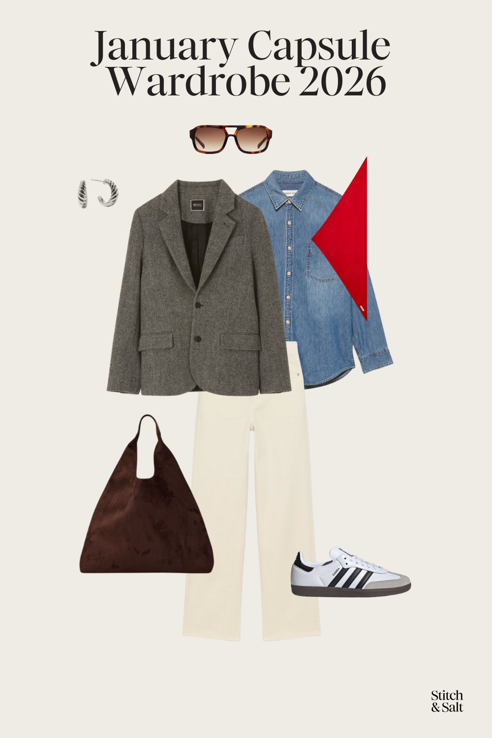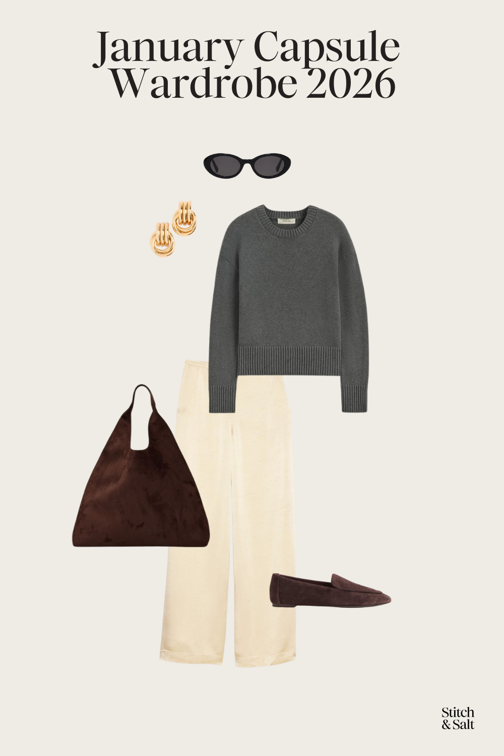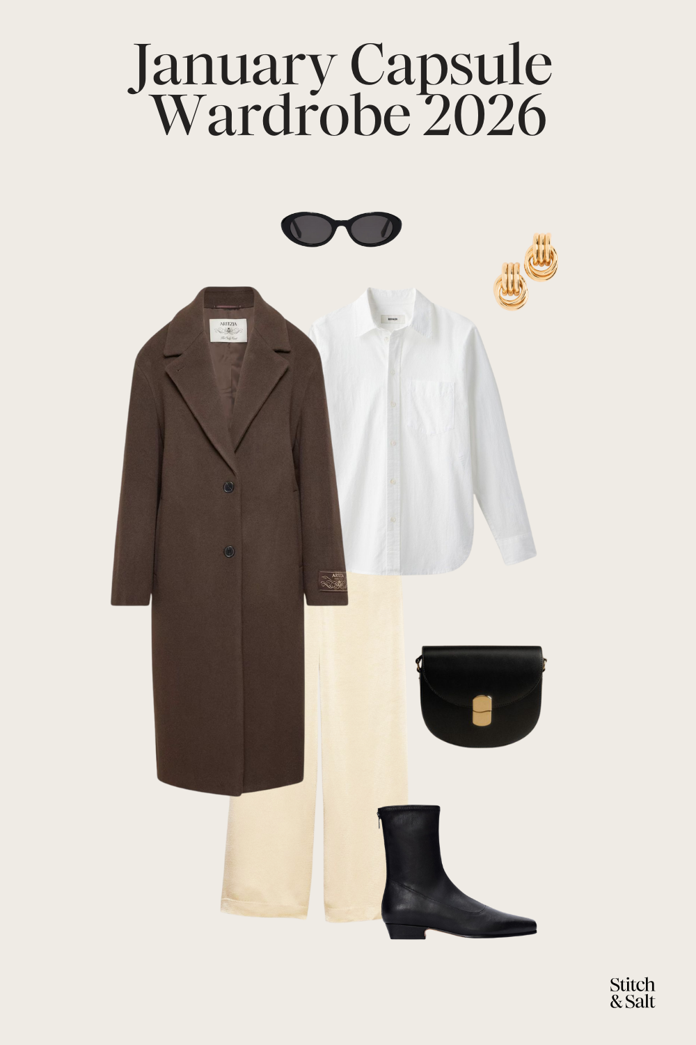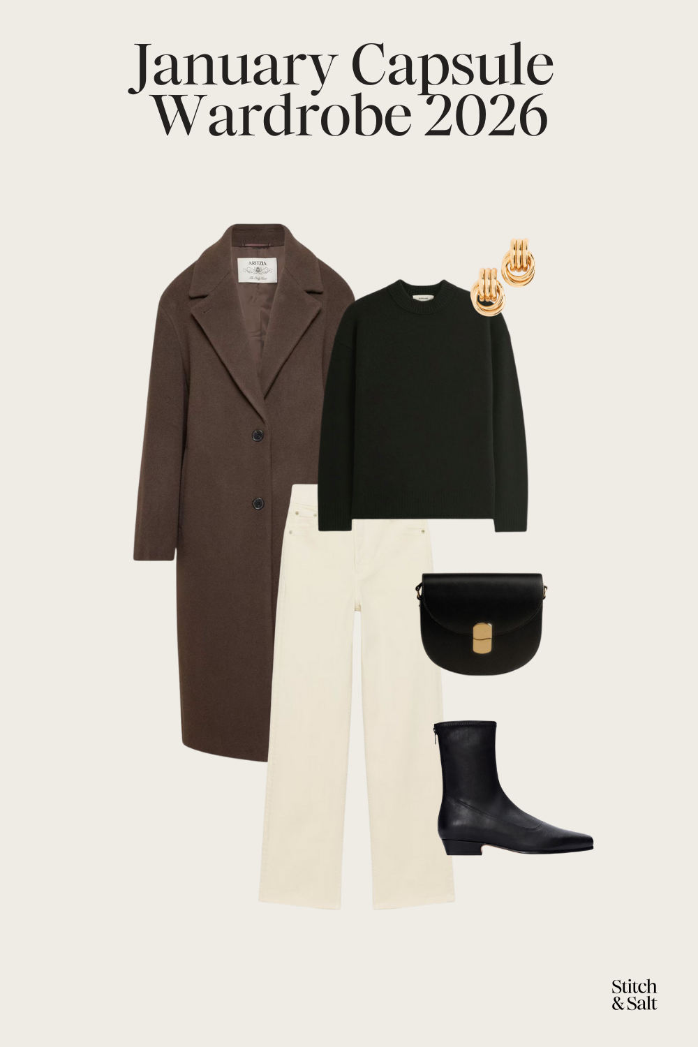 The first capsule wardrobe of 2026! You’ll see this winter capsule wardrobe is for the month of January. This year, I’m planning to do monthly capsule wardrobes here on the blog. There will be plenty of overlap with my seasonal favorites appearing across multiple capsules, but I really like the option to switch up a few pieces after about thirty days. For my January capsule wardrobe, I pulled twenty-five cold weather pieces from my wardrobe including ten tops, six bottoms, three pieces of outerwear, and six pairs of shoes. I’m also sharing the accessories I plan to add down below as well. As always, I included plenty of outfit ideas in this post using the pieces in this capsule. I’ll also be wearing the capsule the entire month of January and sharing my outfits in my Style Weekly posts on Substack.